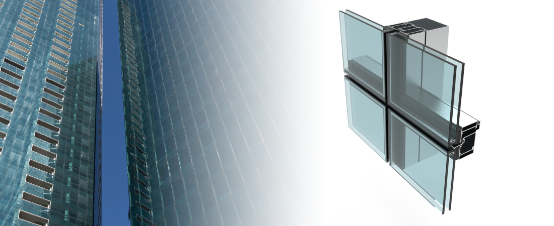 Permite recubrir al edificio con una gran superficie vidriada. Puede utilizarse como estructura soporte de los cristales (Piel de Vidrio estructural, no visible desde el exterior) o con una pequeña vista de los contravidrios (Piel de Vidrio contenido).