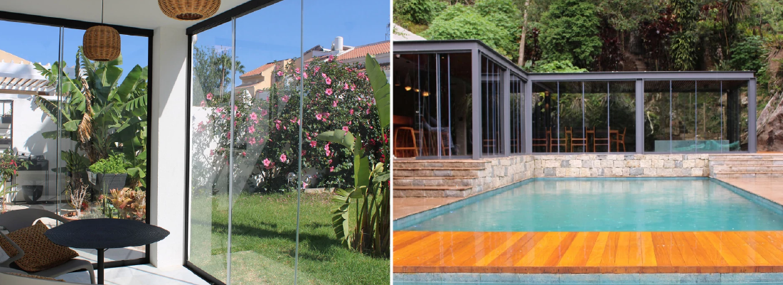 Todos los cerramientos CLAROFLEX® están compuestos por paneles de vidrio, perfiles de aluminio y accesorios, y están fabricados con materiales de altísima calidad europea certificada.